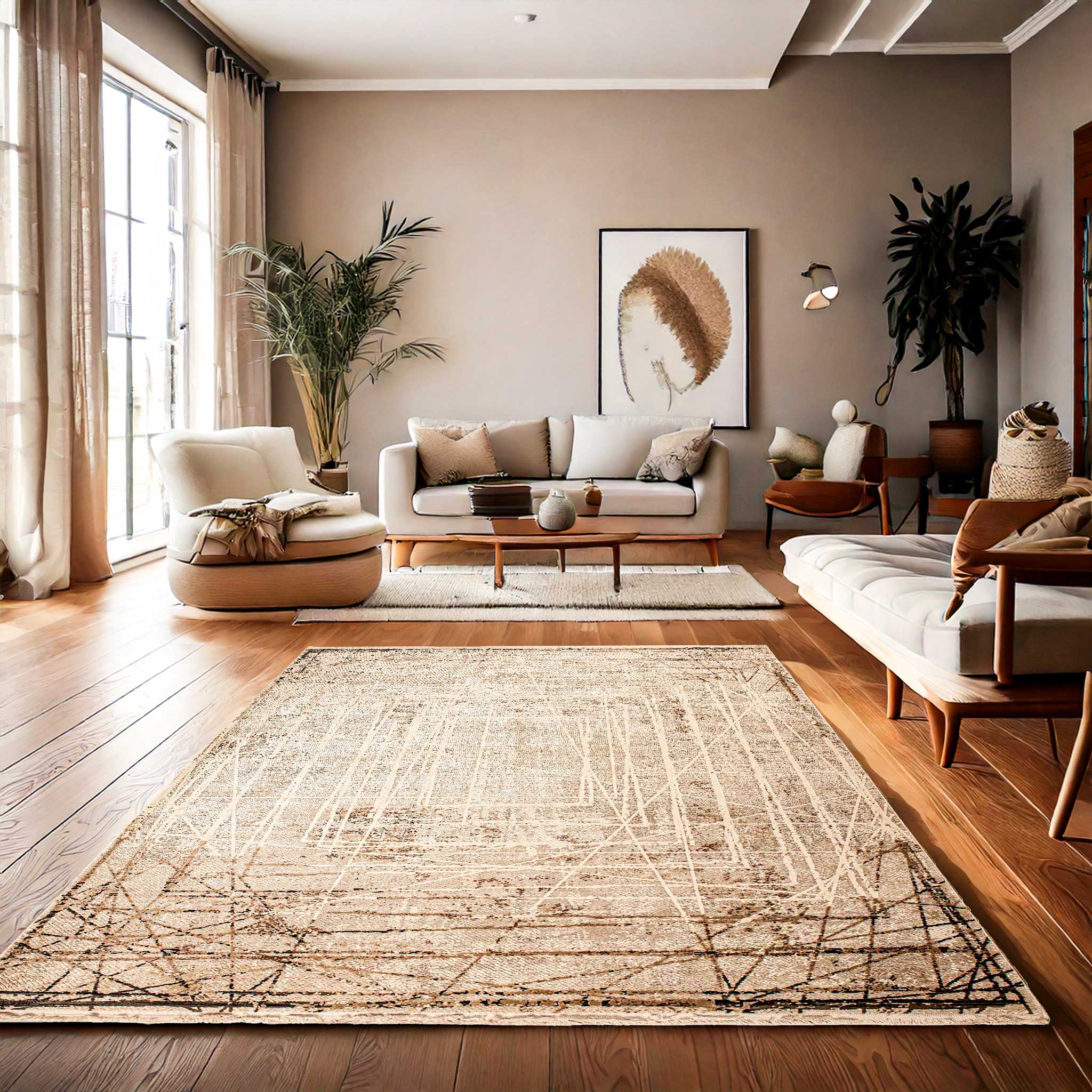 Elevate your space with the timeless beauty of our Nuvora bamboo silk carpet. Featuring a stunning abstract distressed pattern, this design blends soft neutrals of beige, ivory, and muted gray, creating a sophisticated and modern aesthetic. The subtle interplay of colors and textures evokes a sense of artistic depth, making it a perfect addition to contemporary, minimalist, or rustic interiors.